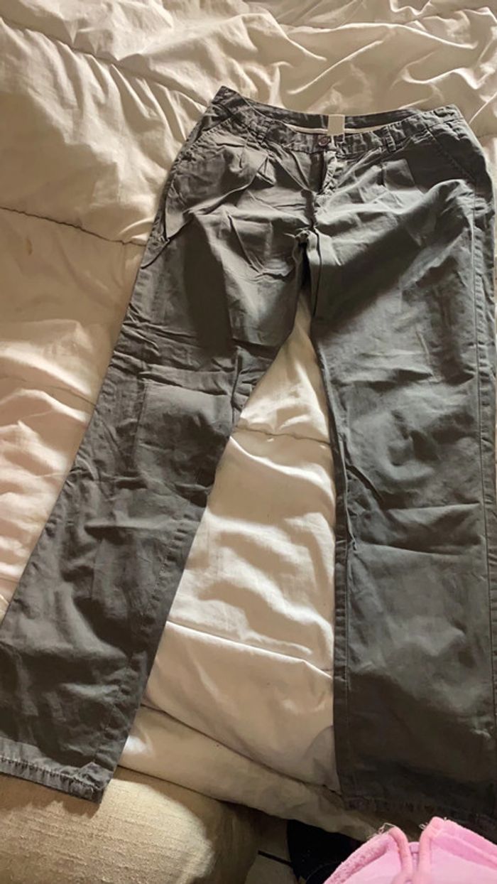 pantalon femme de très bonne qualité de couleur grise taille 38/40 e très bon état de marque camaïeu