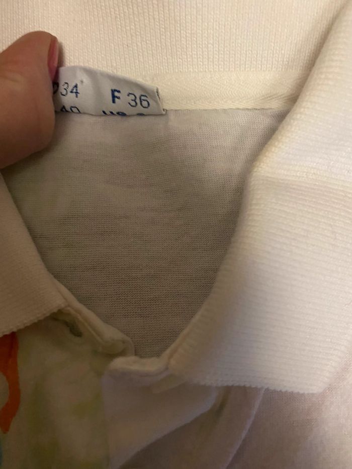 polo en très bon état pour femme blanc à motif logo rose taille 36