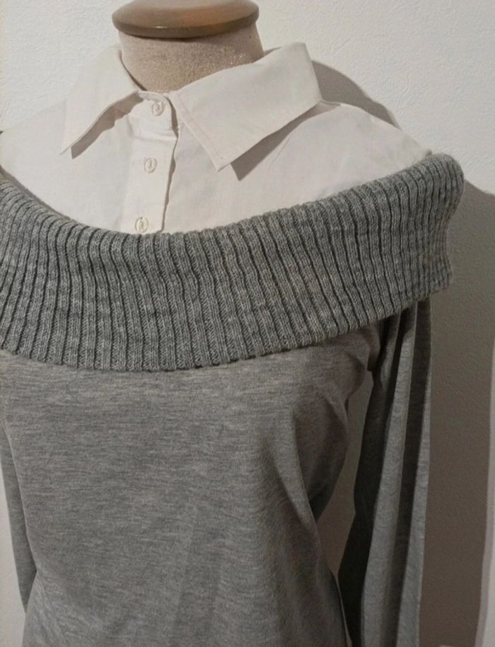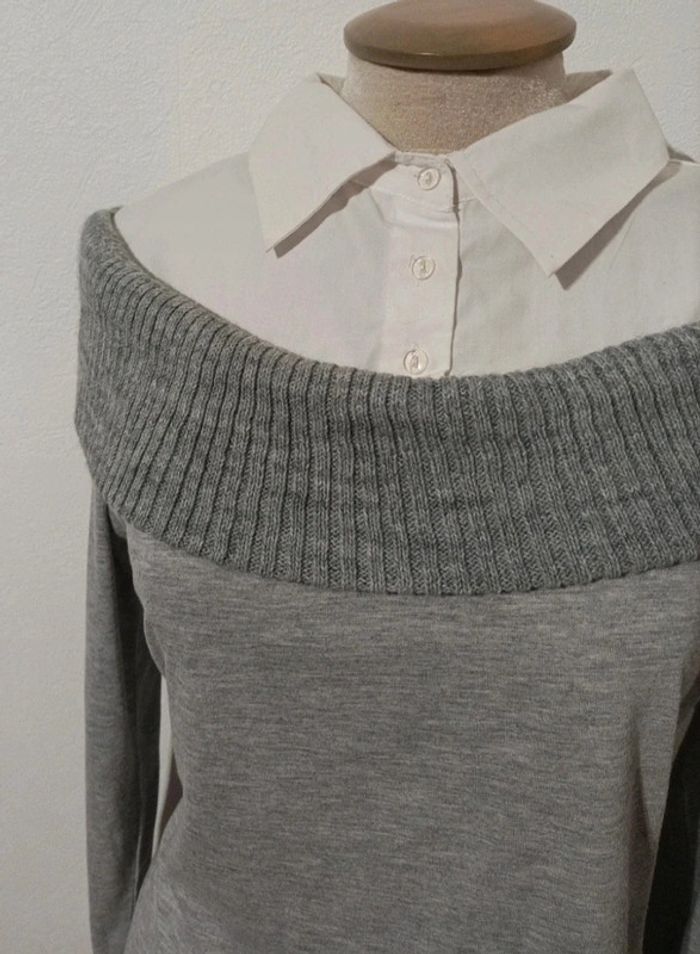 Superbe pull léger grand col Bardot avec haut de  chemise - photo numéro 2