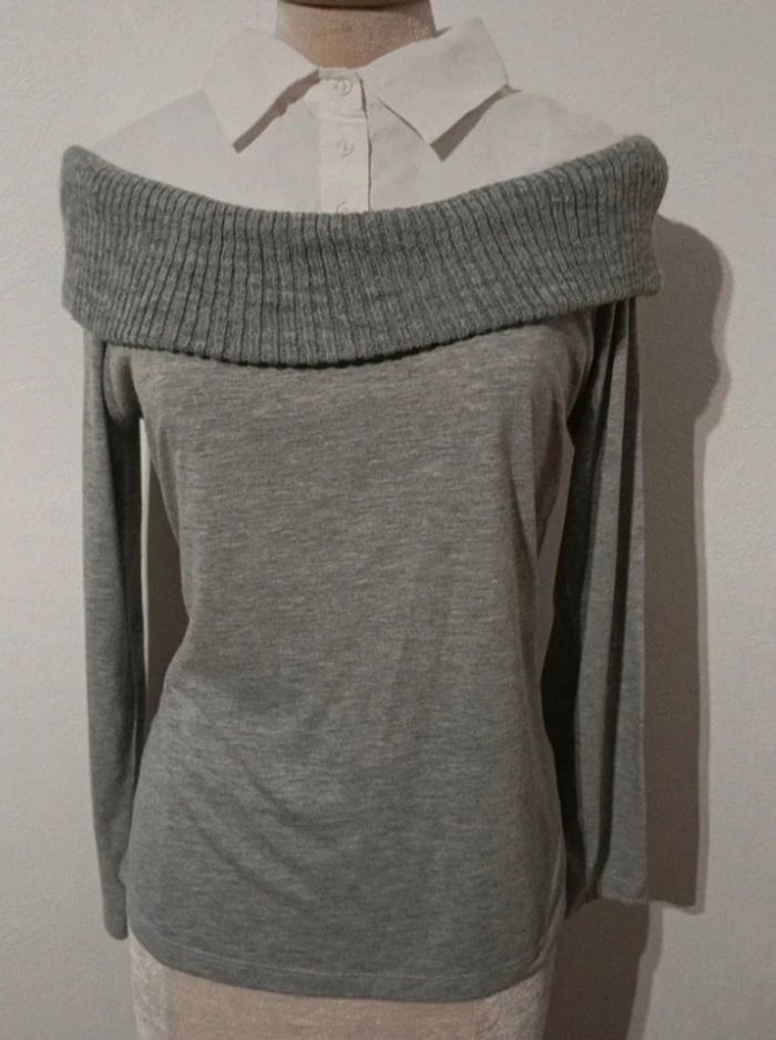 Superbe pull léger grand col Bardot avec haut de  chemise - photo numéro 1