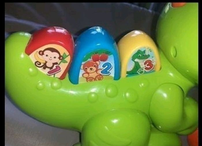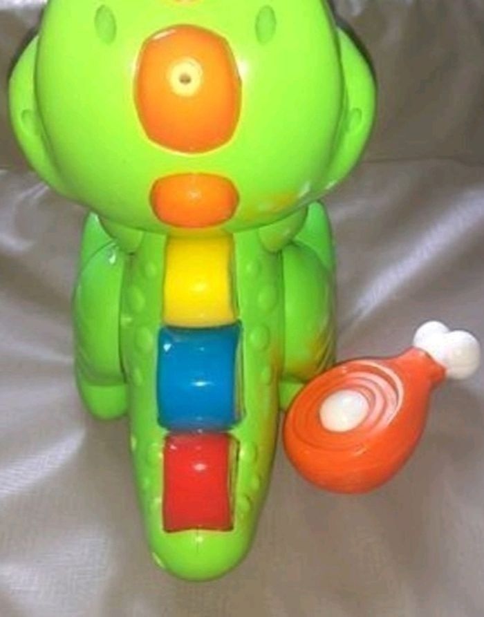 T-Rex en très bonne etat Rien nest habimer. Bebe T-REX suivra votre enfant en secouant le hochet. A partir de 10 mois jusqu'à 36mois voir plus. Marque clementoni (vendu neuf à 36.33euro) Maison non-fumeur Pas d'animaux Je peux faire une vidéo pour montre qu'il fonctionne parfaitement