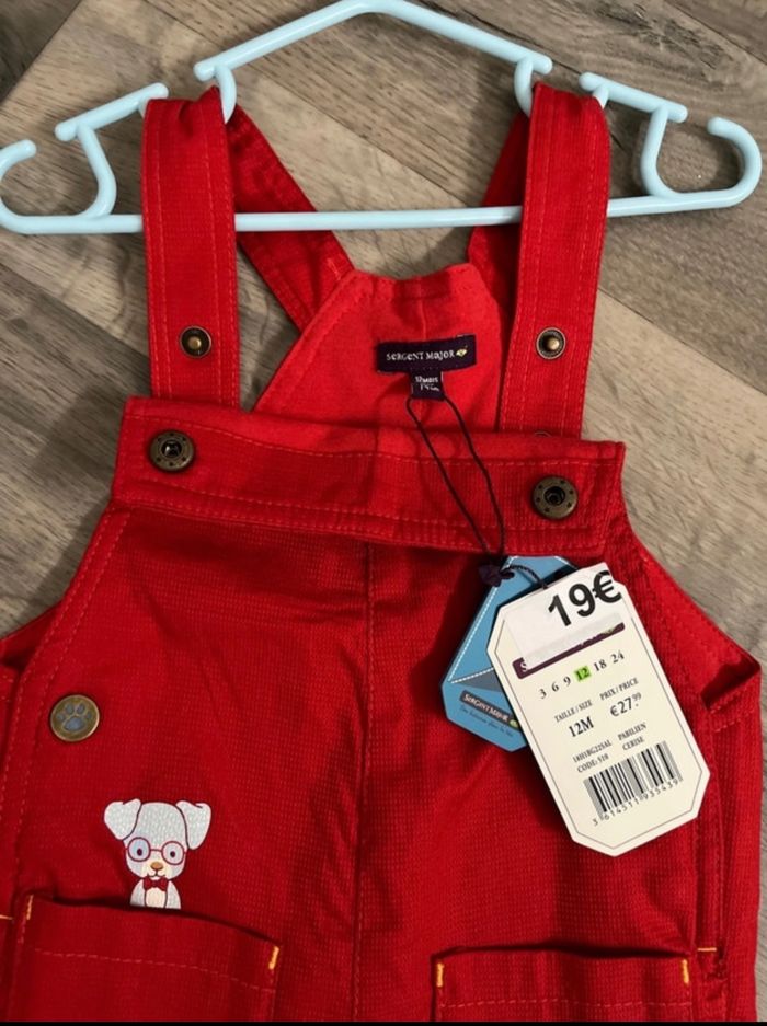 Ensemble salopette + gilet 12 mois sergent major Neuf Idée de cadeau Peut se vendre séparément