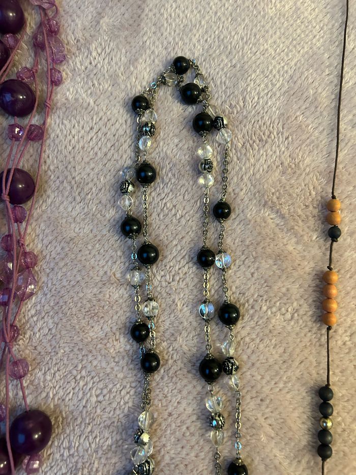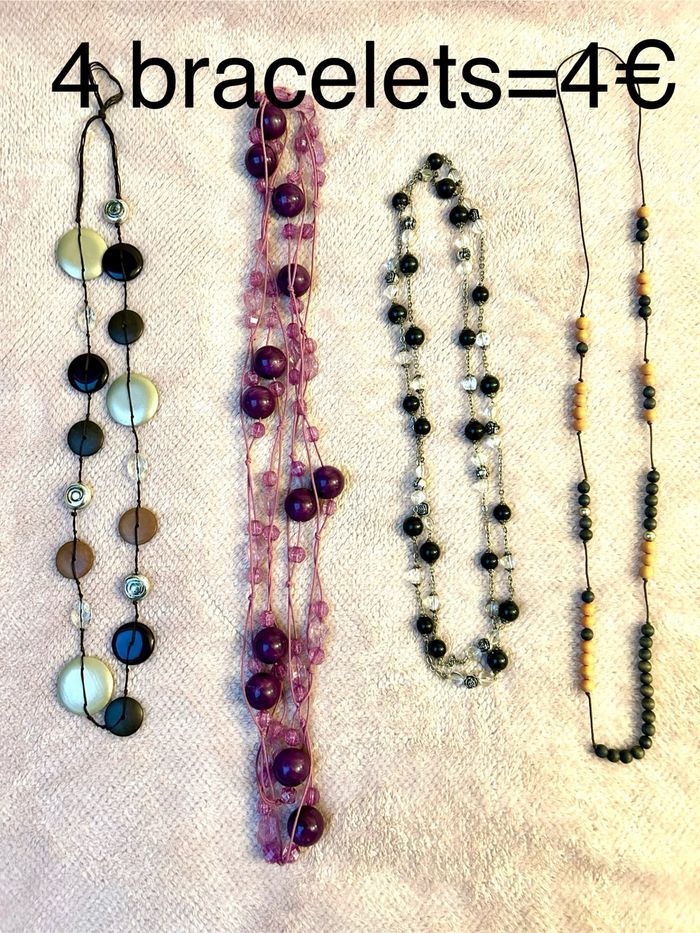 4 colliers fantaisies en bon état (un a été raccourci avec un noeud)