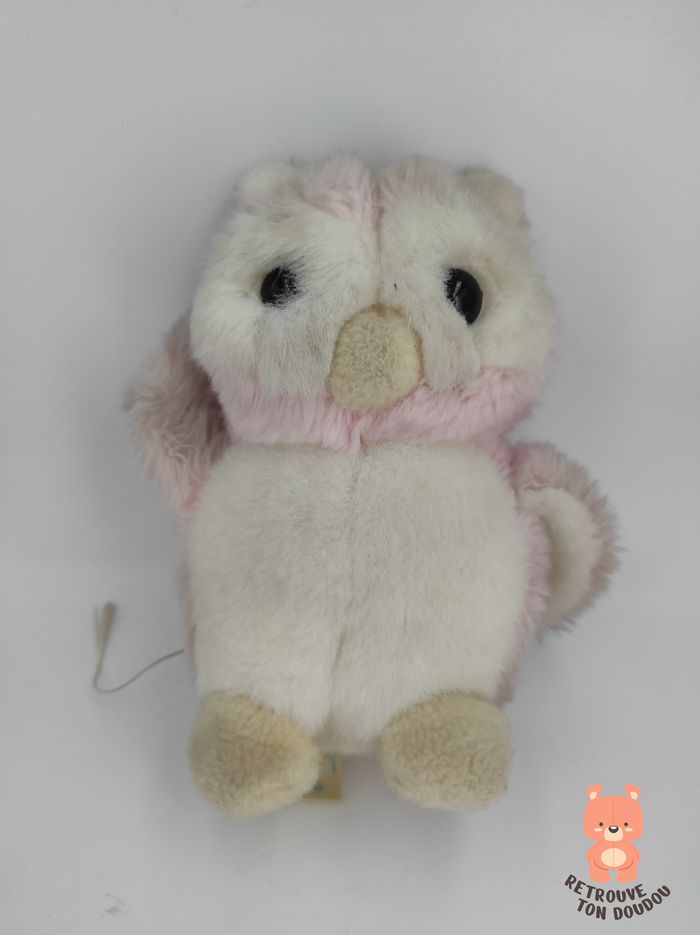 🦉 Peluche musicale Hibou ou Chouette blanc et rose, marque Nounours, vintage début année 80. 📏 Dimension : 20 cm environ ✨ Occasion. Correct, la musique fonctionne mais le bout pour tirer la ficelle est cassé, peluche à nettoyer 💦 Passage vapeur 🧼 👀 Vous achetez le doudou que vous voyez sur les photos.