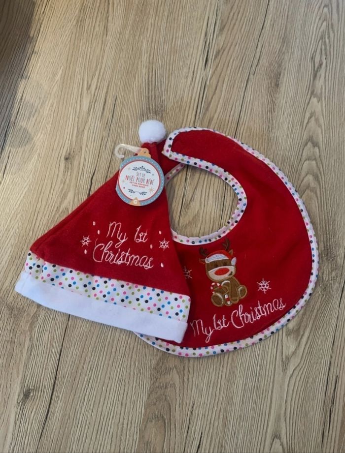 Bonnet de Noël + bavoir "My 1st Christmas" Jamais porté, encore avec étiquette