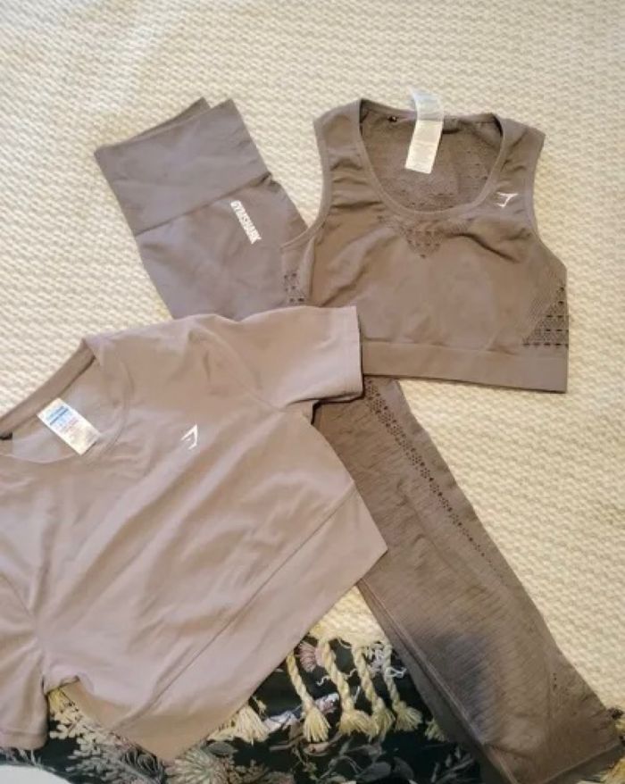Je vend un ensemble comple neuf taille M couleur taupe rose.