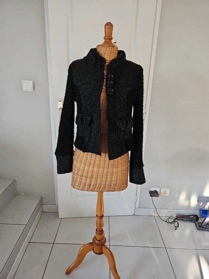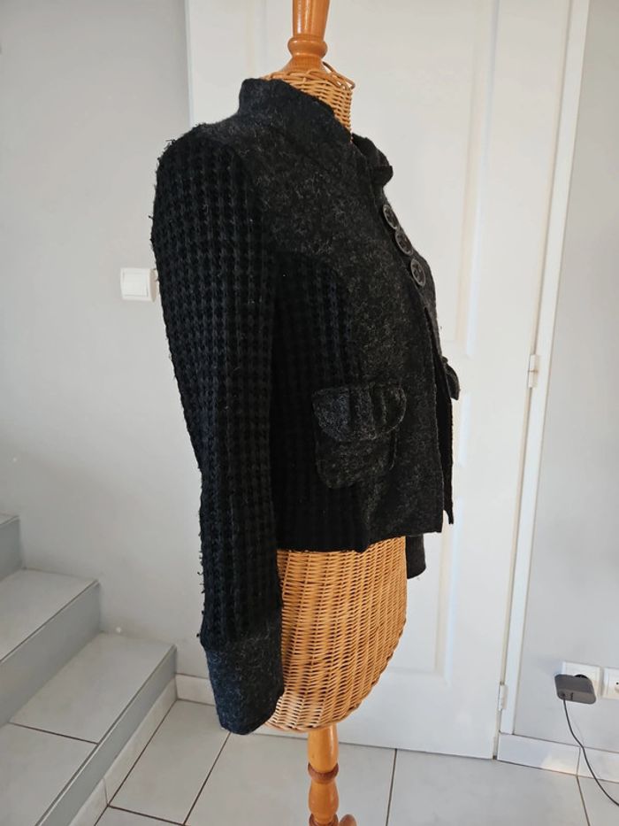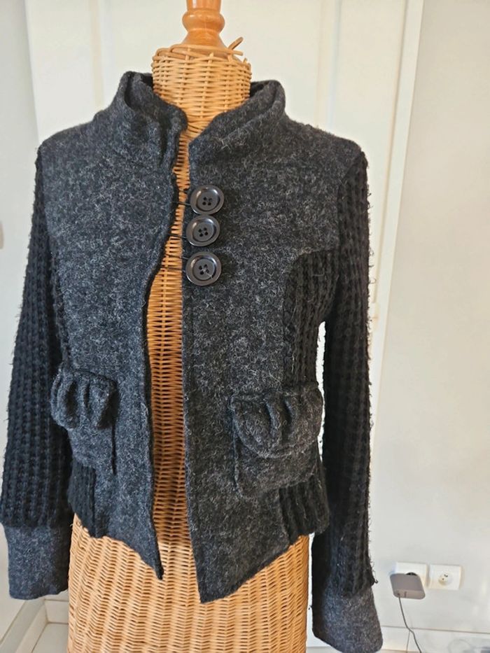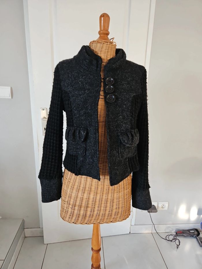 Veste femme noire et gris foncée La Fée maraboutée Possède quelques bouloches et les élastiques pour fermer les boutons sont un peu détendus cf photos N'hésitez pas à aller voir mes autres ventes classées par #eloio #eloiofemme #eloiofemmem