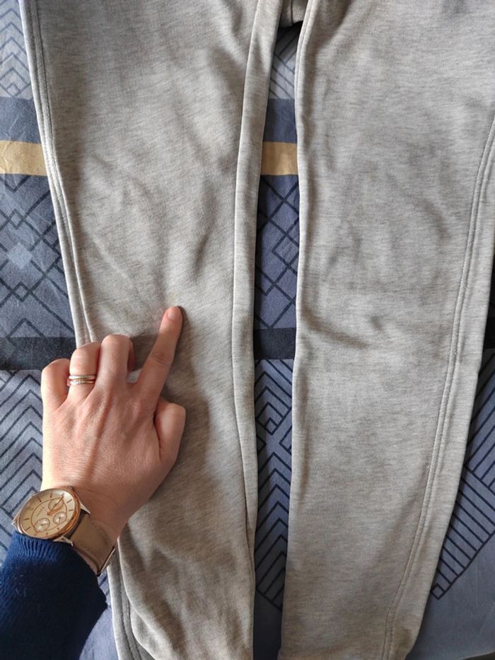 Le haut est en 10 ans Le bas est en 9 ans Petite micro tâche jaune sur le genou droit et au niveau des poignets mais je n'ai pas de produit détachant. Voir photos c'est quasi invisible mais le prix tient compte de ça