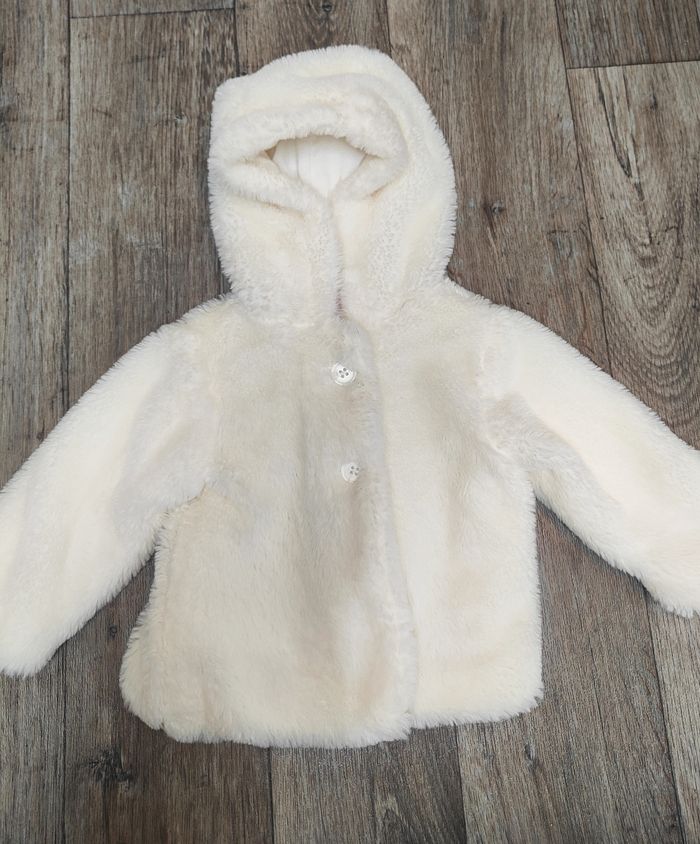 Manteau doudoune toute douce blanche effet esquimau taille 18mois en très bon état !!
