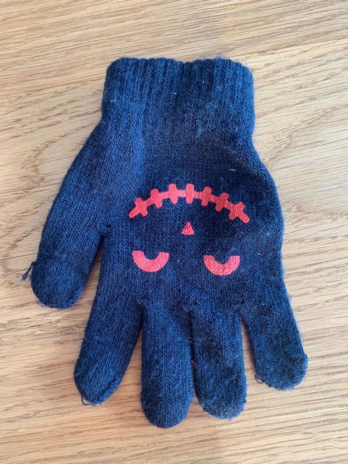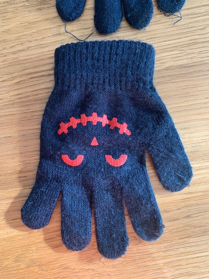 Gants enfant garçon tao tape à l’œil Lainage navy bleu Marine Visuel Print rouge : yeux nez bouche Finition rib/ côtes Extensibles pour s’adapter à différents tailles de mains/ doigts