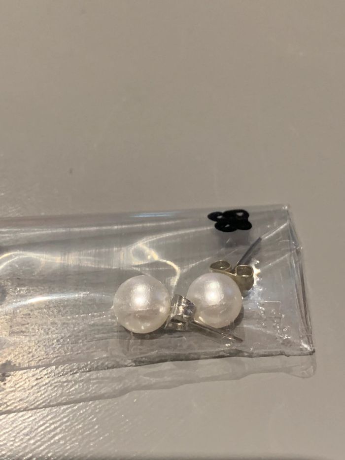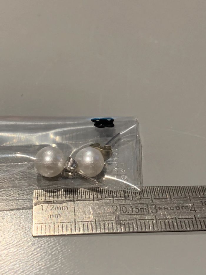 Boucles d’oreilles Adopt’ n•88 Perles boules blanc  Structures tiges + fermoirs argentés  Bijoux - photo numéro 3