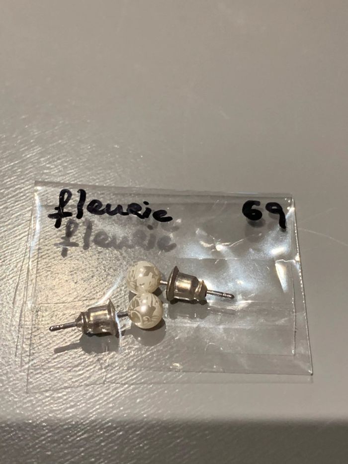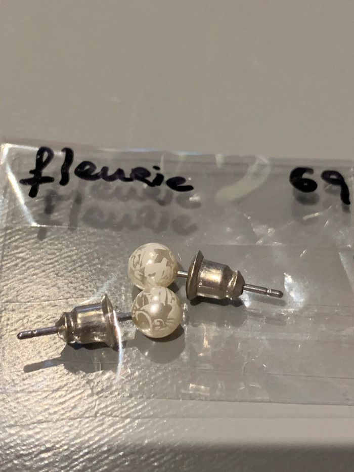 boucles d’oreilles Adopt’ n•69 perles boules rondes Beige crème motifs arabesques fleuris Structure + fermoirs argentés Bijoux Les dimensions de chaque paire sont à voire sur la dernière photo. Un réglet est placé à côté afin de montrer la dimension. (Les numéros notés sur les pochette sont en guise de repères, me permettant de ne pas confondre les différentes boucles que je propose à la vente).