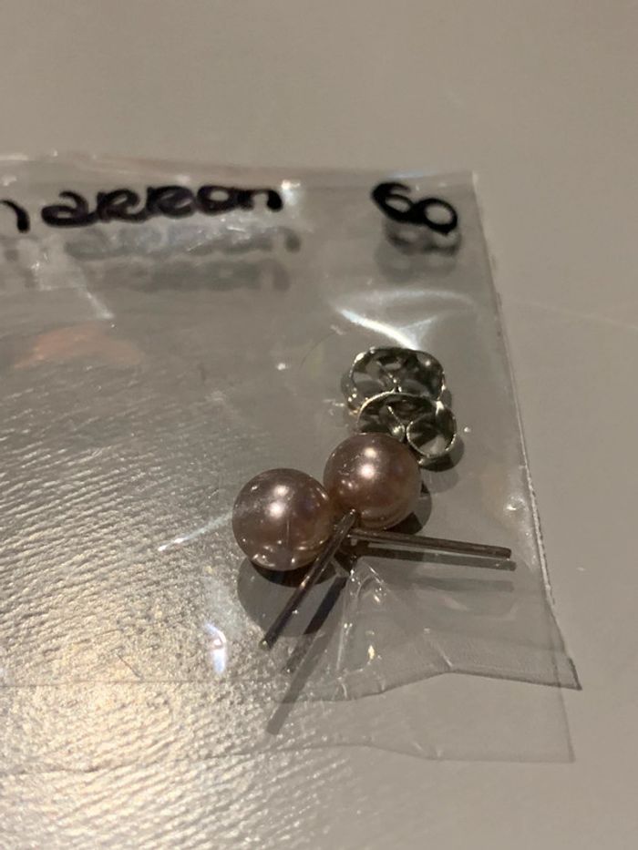 Boucles d’oreilles Adopt’ n•60 Perles boules marron Structures tiges + fermoirs argentés  Bijoux - photo numéro 2