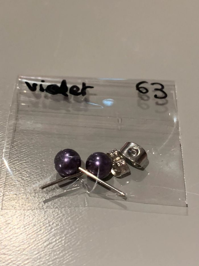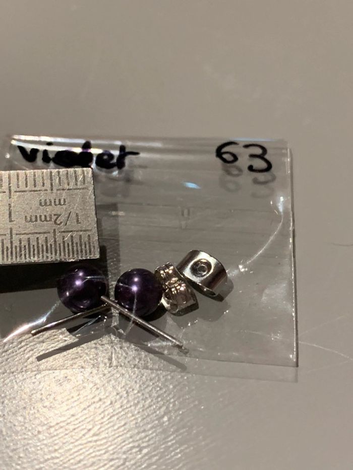 Boucles d’oreilles Adopt’ n•63 Perles boules violet Structures tiges + fermoirs argentés  Bijoux - photo numéro 3
