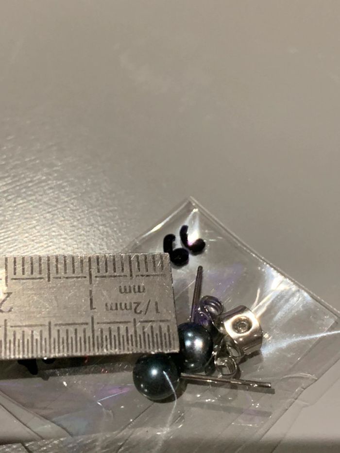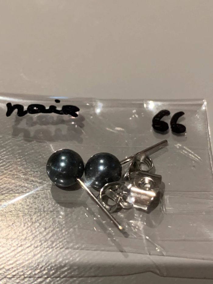 Boucles d’oreilles Adopt’ n•66 Perles boules noir Structures tiges + fermoirs argentés  Bijoux - photo numéro 3