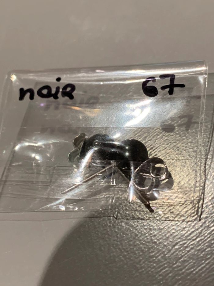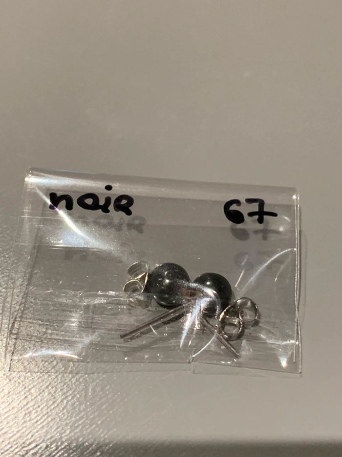 Boucles d’oreilles Adopt’ n•67 Perles boules noir Structures tiges + fermoirs argentés  Bijoux - photo numéro 3