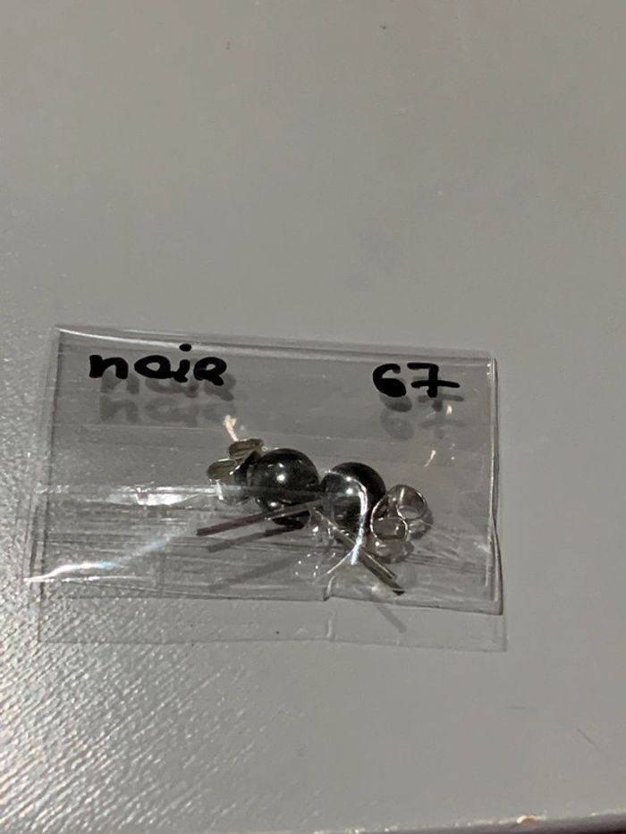 Boucles d’oreilles Adopt’ n•67 Perles boules noir Structures tiges + fermoirs argentés  Bijoux - photo numéro 1