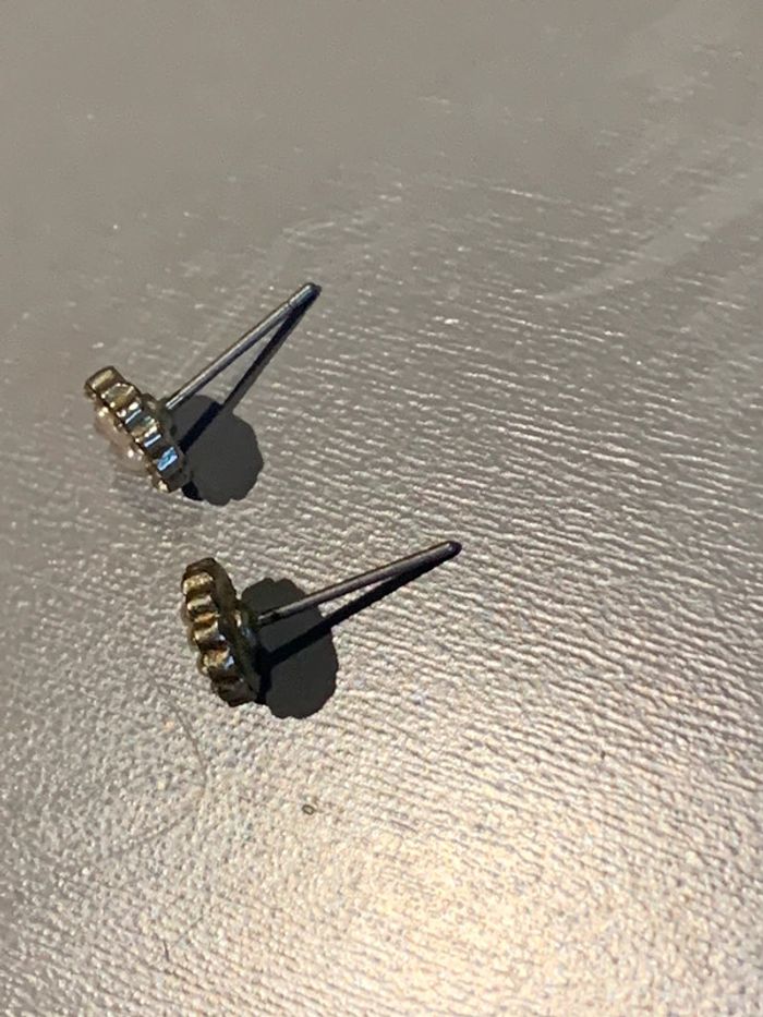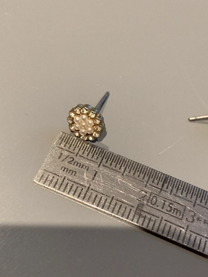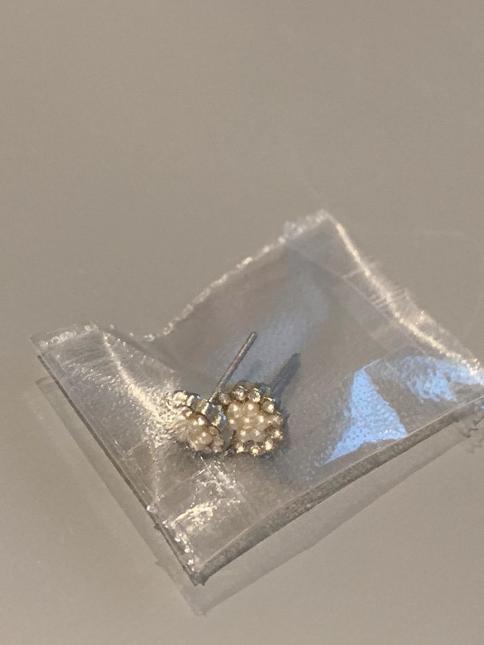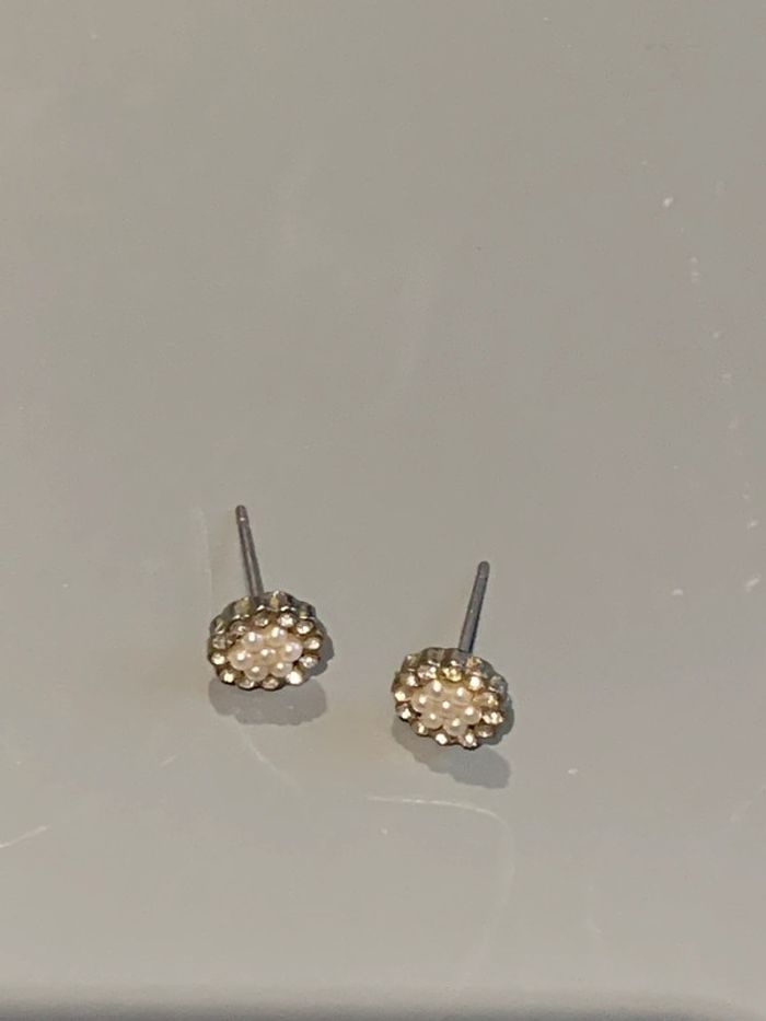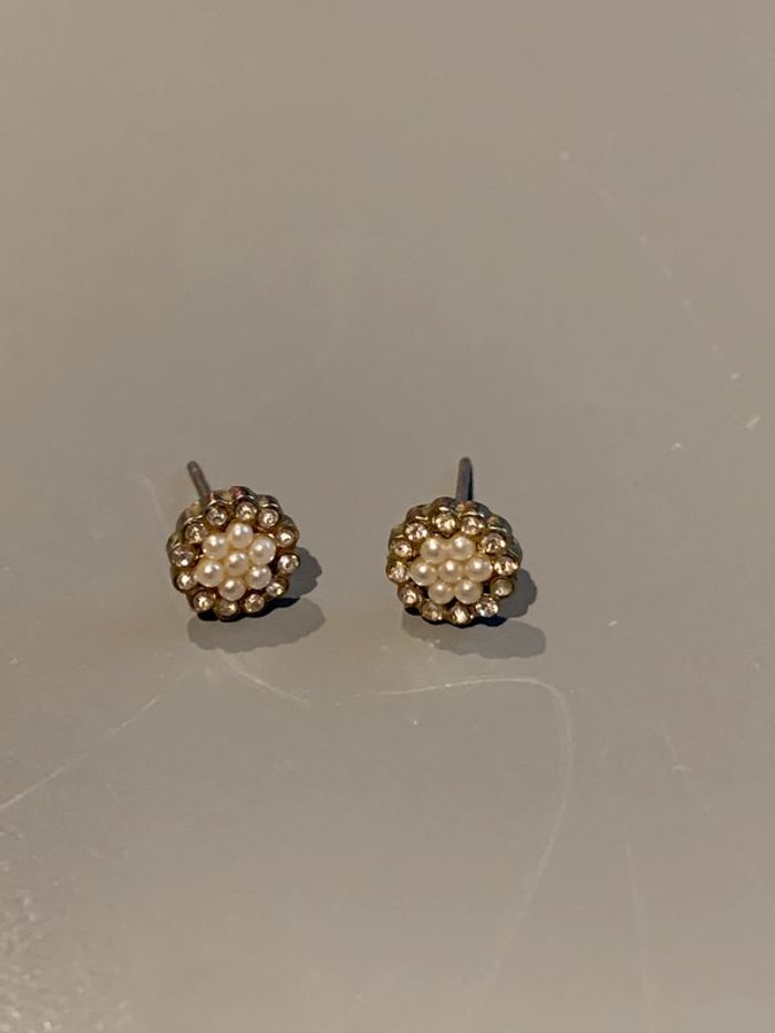 boucles d’oreilles histoire d’or Fleur perle blanche + strass pierre au centre - photo numéro 8