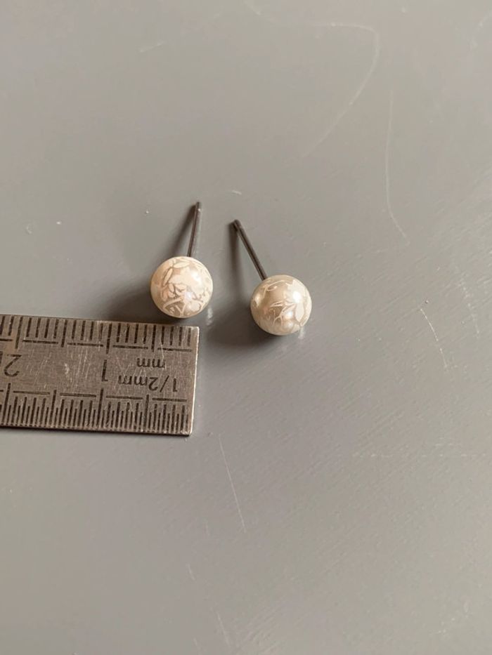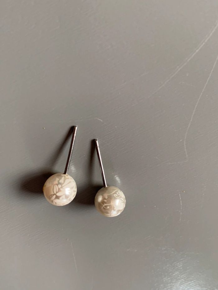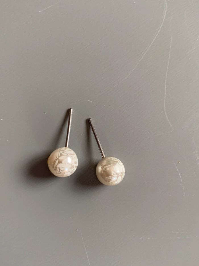 perles boules rondes 6 mm Blanc crème  motifs arabesques fleuris ton sur ton - photo numéro 1