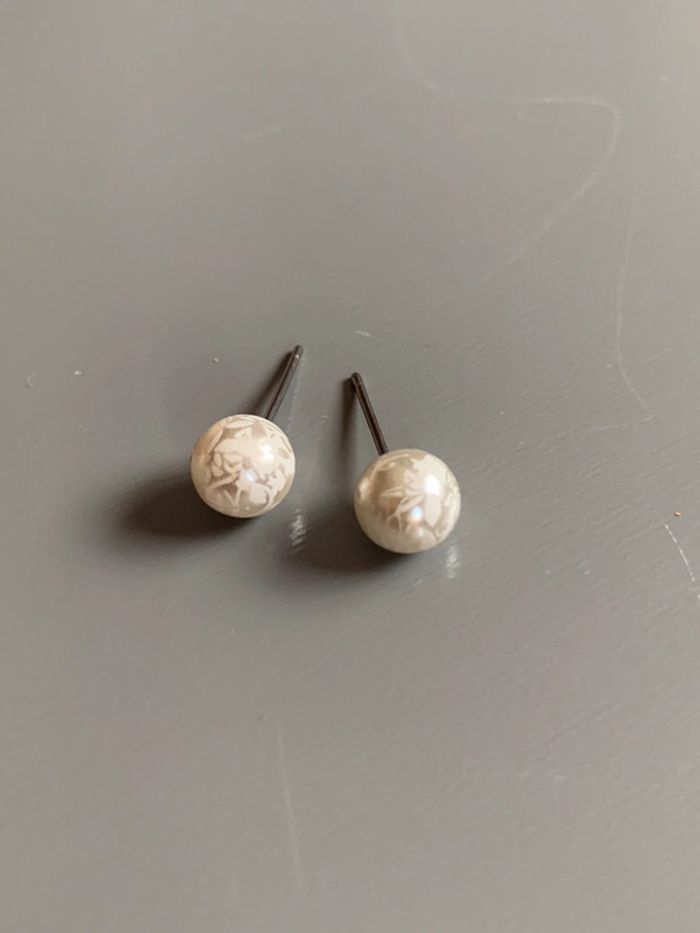 perles boules rondes 6 mm Blanc crème motifs arabesques fleuris ton sur ton
