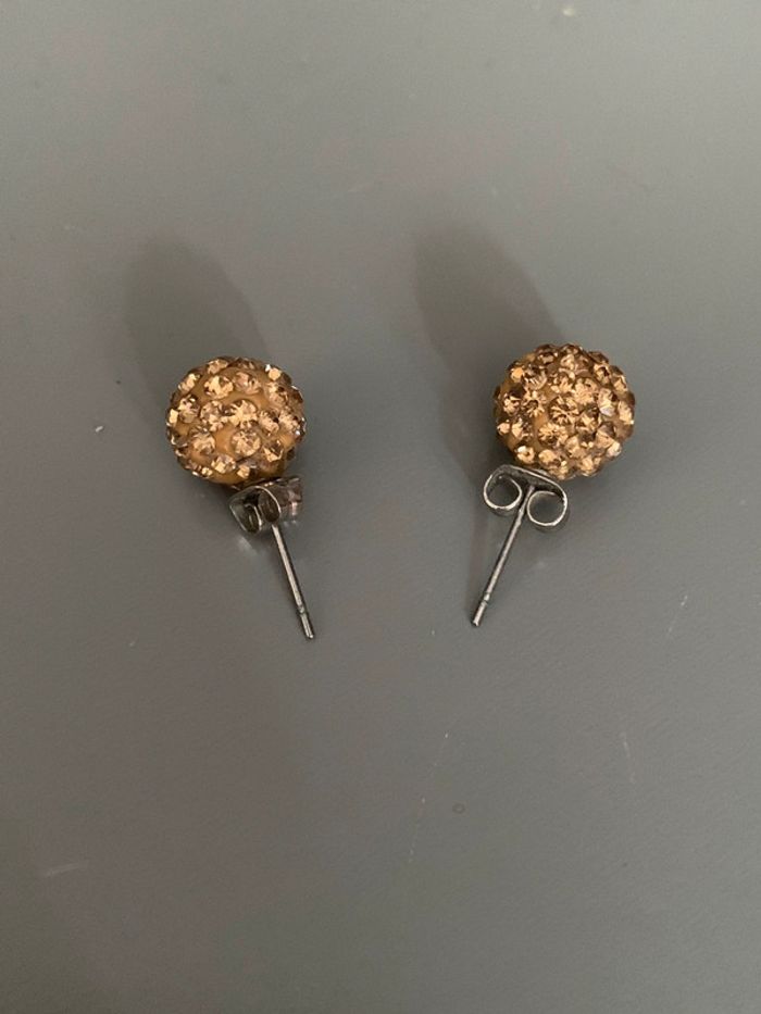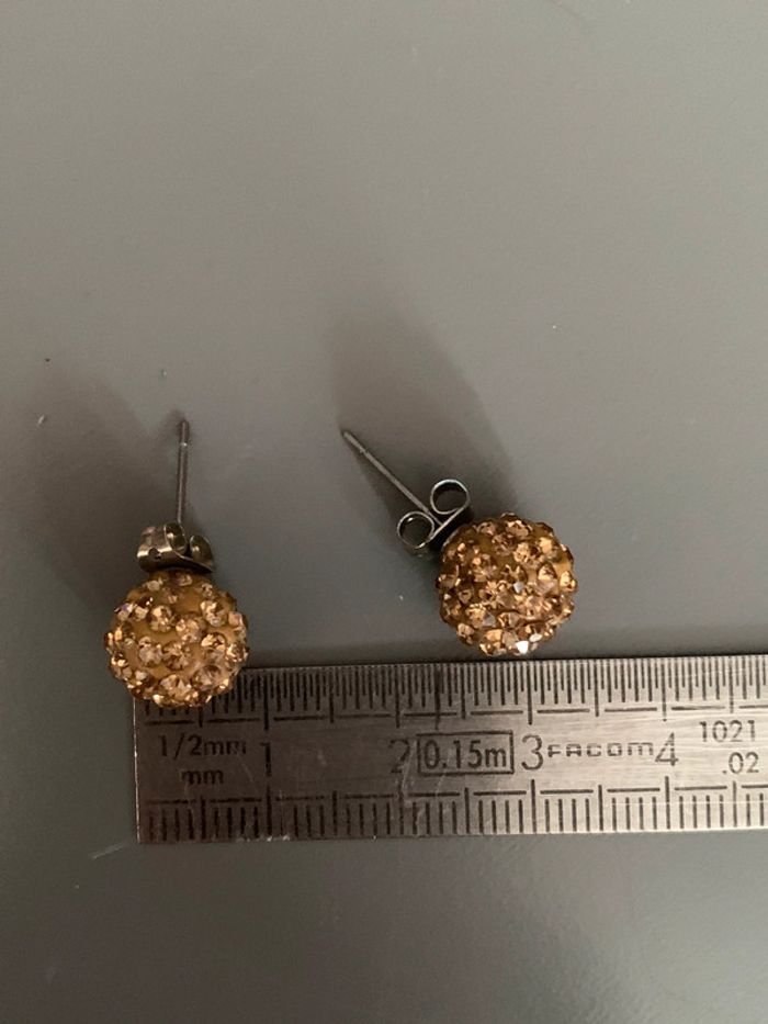 Boucles d’oreilles  Strass marron camel doré Structure argentée  Bijoux - photo numéro 1