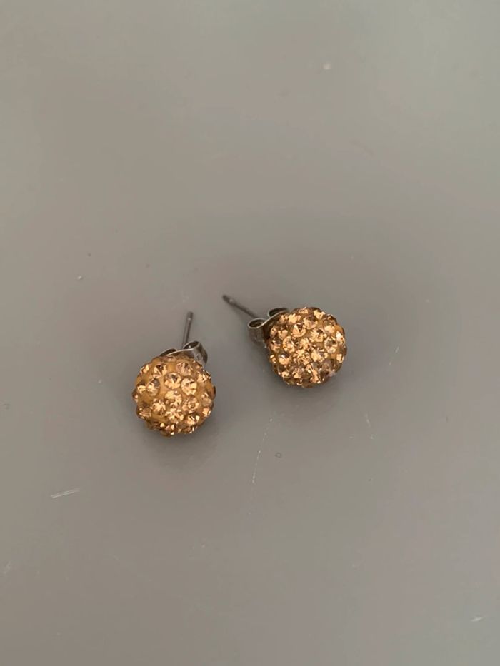 Boucles d’oreilles Adopt’ Boules Strass marron camel doré Structure argentée Avec fermoirs Bijoux