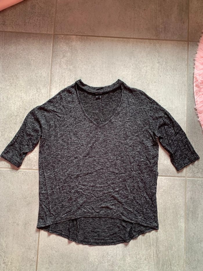 Pull femme New Look Noir-gris chiné Encolure en V  Manches 3/4