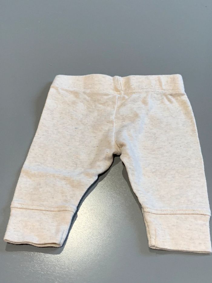 legging enfant bébé fille Kiabi coloris écru beige crème chiné, rose, noir Visuel print sérigraphie yeux et moustache de chat avec nez coeur Bracelets chevilles surpiqués tissu avec élasthane ceinture élastiquée Taille 3 mois : 56/62 cm Porté deux fois