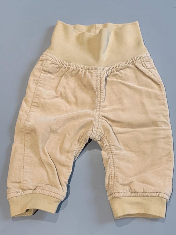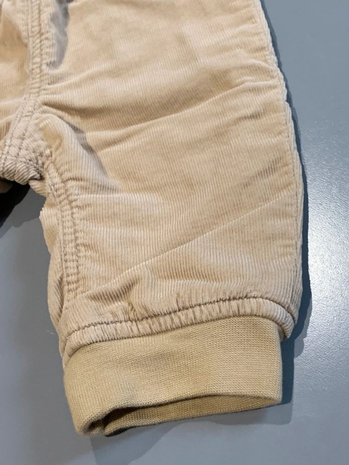 pantalon velours côtelé enfant bébé garçon H&M Beige jambes longues Intérieur doublé Bas resserré (élastique) porté 1 fois ceinture élastiquée en rib/ côtes : haute - peut être retroussée Étiquette déco au dos Taille 2/4 mois : 62 cm