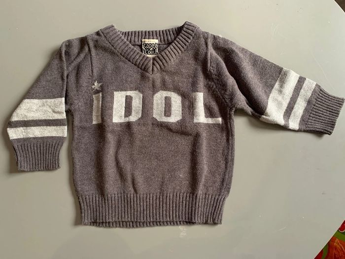 Pull bébé garçon tao tape à l’œil  Lainage gris anthracite  Visuel gris clair Idol - photo numéro 1