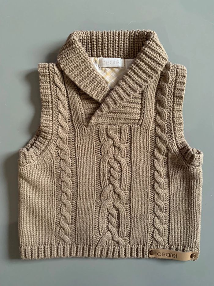 Boléro pull sans manche bébé garçon Okaïdi Obaïbi Lainage marron Plat + tressé