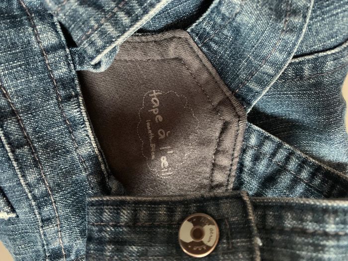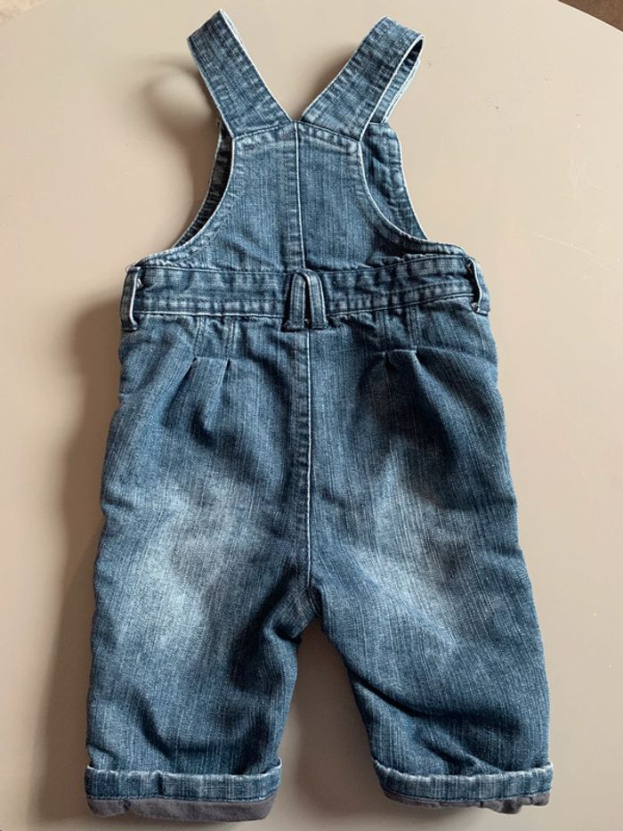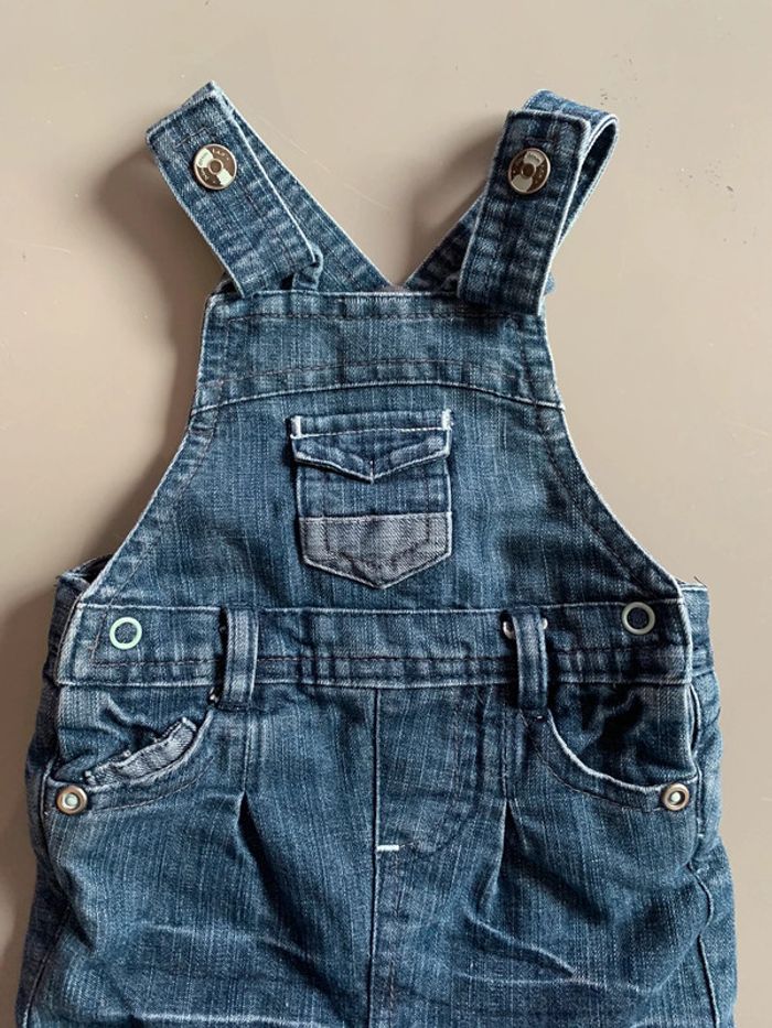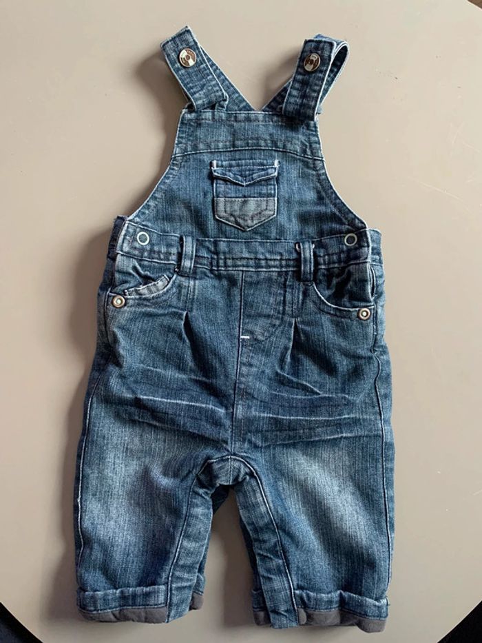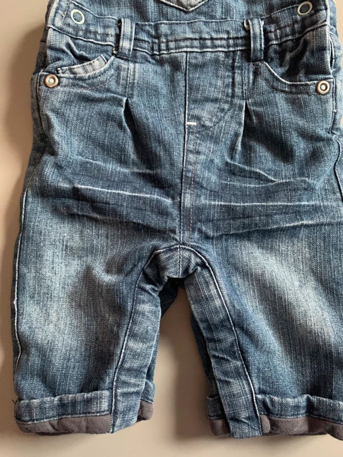 Salopette bébé garçon TAO tape à l’œil Denim bleu (jeans) Bavette avec poche centrale Délavage Pinces sous ceinture Ouverture entre jambes boutons pressions Poches devant et dos Bretelles avec boutons pressions Jambes longues Intérieur doublé Coulants/ passants pour passage ceinture Très peu porté Taille 1 mois