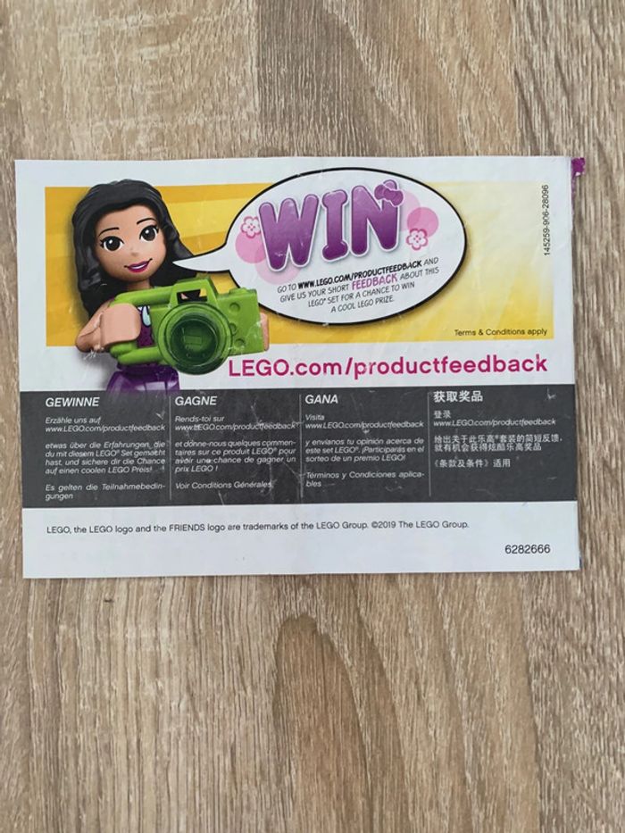 Notice livret Lego Friends 41385 Merci de bien regarder les photos svp pour voire l’état de chacune des notices. Les notices possédant des QR codes ont ces derniers visibles en réalité (ils sont simplement cachés sur les annonces). Raison de la vente: - les notices sont vendues dans le but de satisfaire les collectionneurs recherchant à collectionner ou bien - pour toute personne souhaitent construire ses Lego, mais ayant perdu celle d’origine correspondante. Alors, plutôt que de jeter des notices inutilement, je pense aux personnages qui en recherchent.