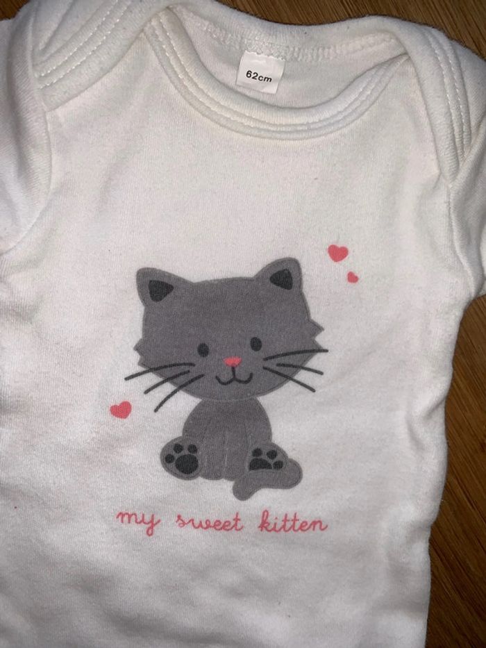 Body bébé fille In Extenso Blanc Visuel sérigraphie print chat gris + coeurs roses - photo numéro 3