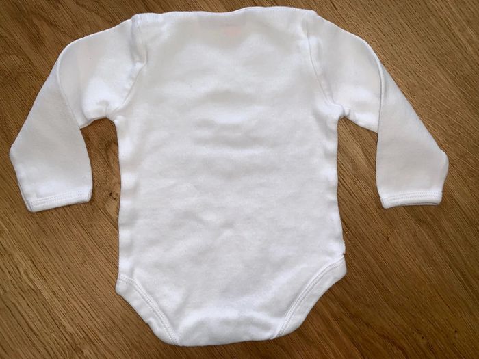 Body bébé fille Hema Blanc Visuel sérigraphie print doré couronne + I am the Princess Manches longues Encolure arrondie Ouverture fermeture entrejambe : boutons pressions Coupe droite Tissu souple avec élasthane Taille 1 mois :50/56 cm