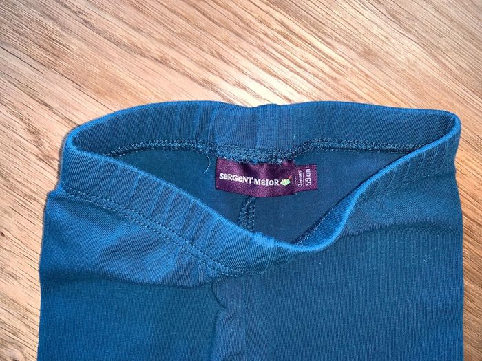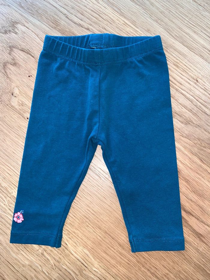 legging enfant bébé fille Sergent Major coloris bleu/vert Visuel motif fleur rose saumon fuchsia turquoise coupe moulante tissu avec élasthane ceinture élastiquée Taille 3 mois : 59 cm Porté une fois