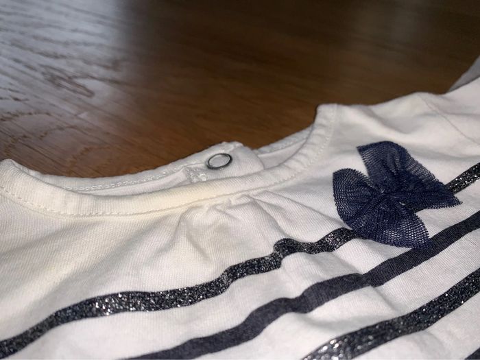 Tee-shirt bébé fille Kiabi Blanc à rayures bleu Marine et paillettes  Noeud en tulle - photo numéro 2