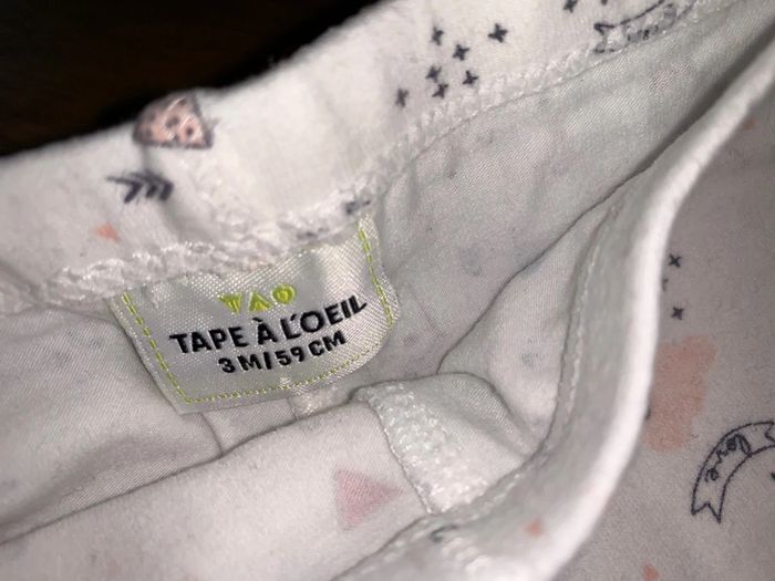 legging enfant bébé fille tao tape à l’œil coloris blanc rose rouge gris vert bleu motif all over maison nuage oiseau triangles jambes longues coupe moulante tissu avec elasthane ceinture élastiquée Taille 3 mois : 59 cm