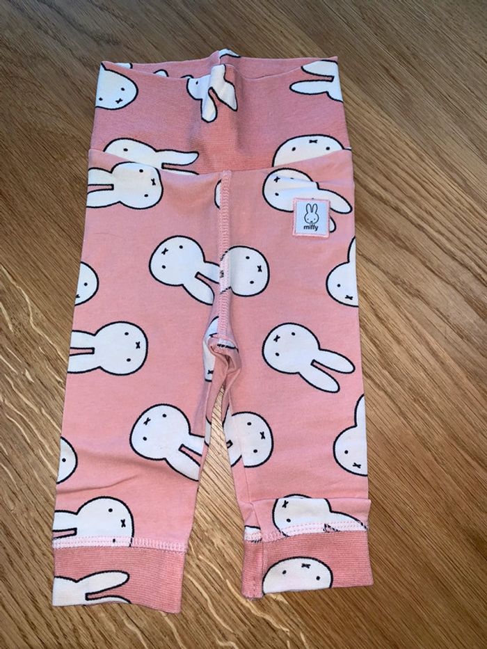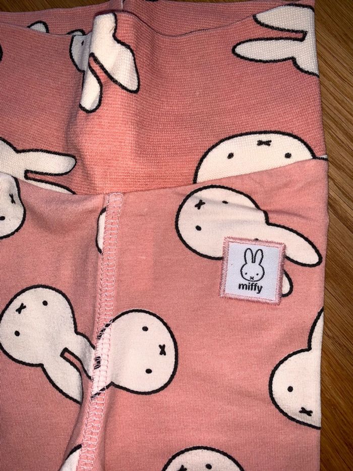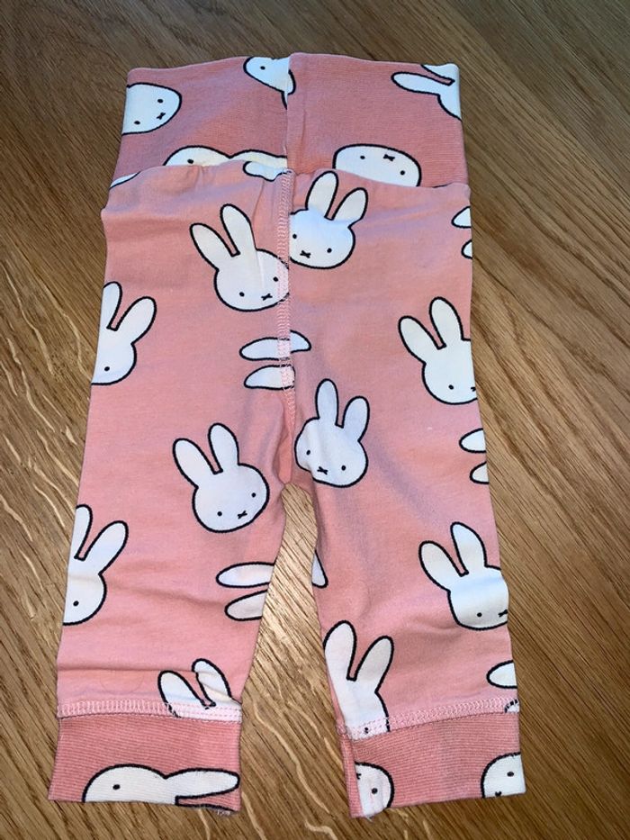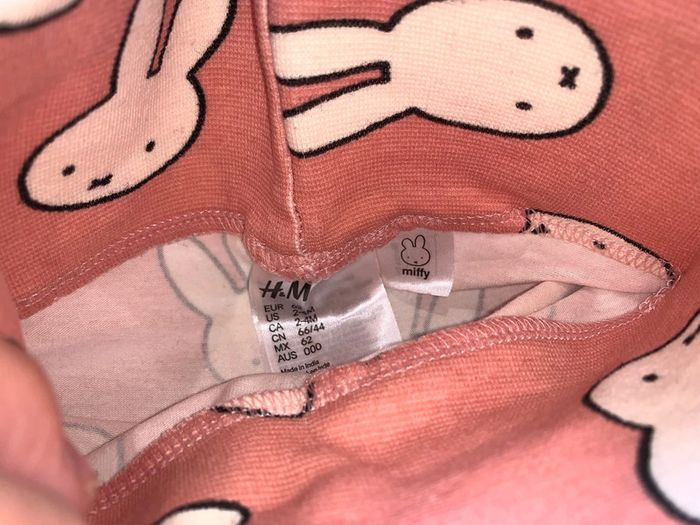 legging enfant bébé fille Miffy H&M coloris blanc rose noir motif all over têtes de lapins jambes longues coupe moulante tissu avec elasthane ceinture haute : à porter tél que ou à retrousser Taille 2-4 mois : 62 cm