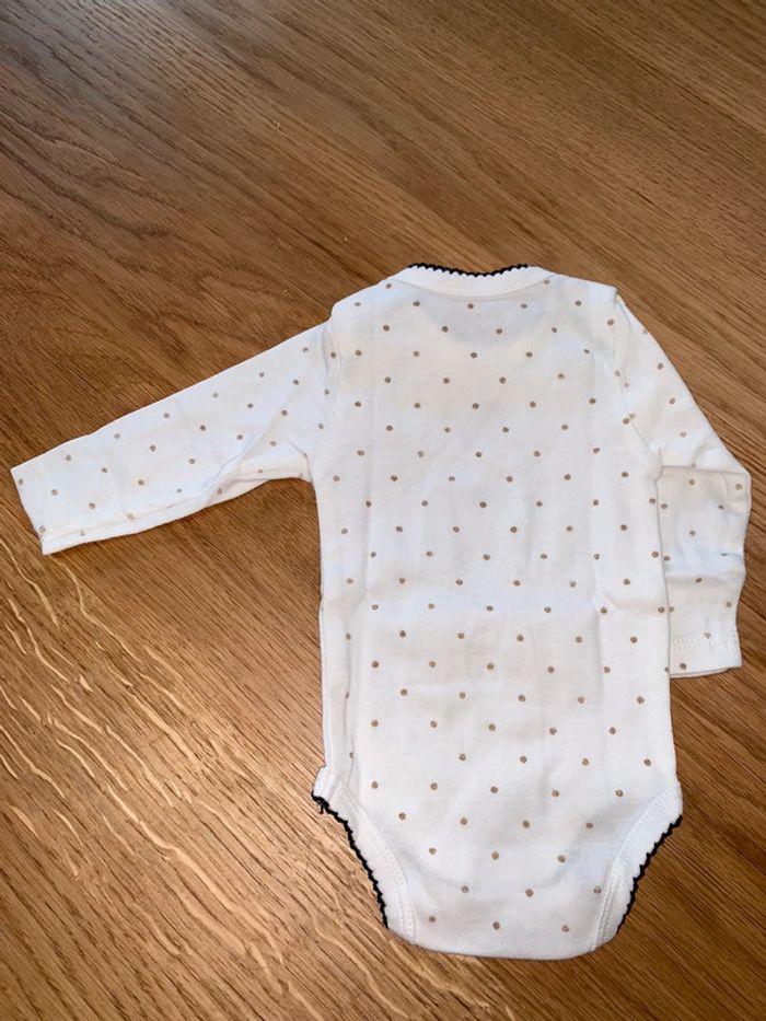 Body bébé fille Kiabi Blanc a pois dorés  Finitions croquet noir - photo numéro 3