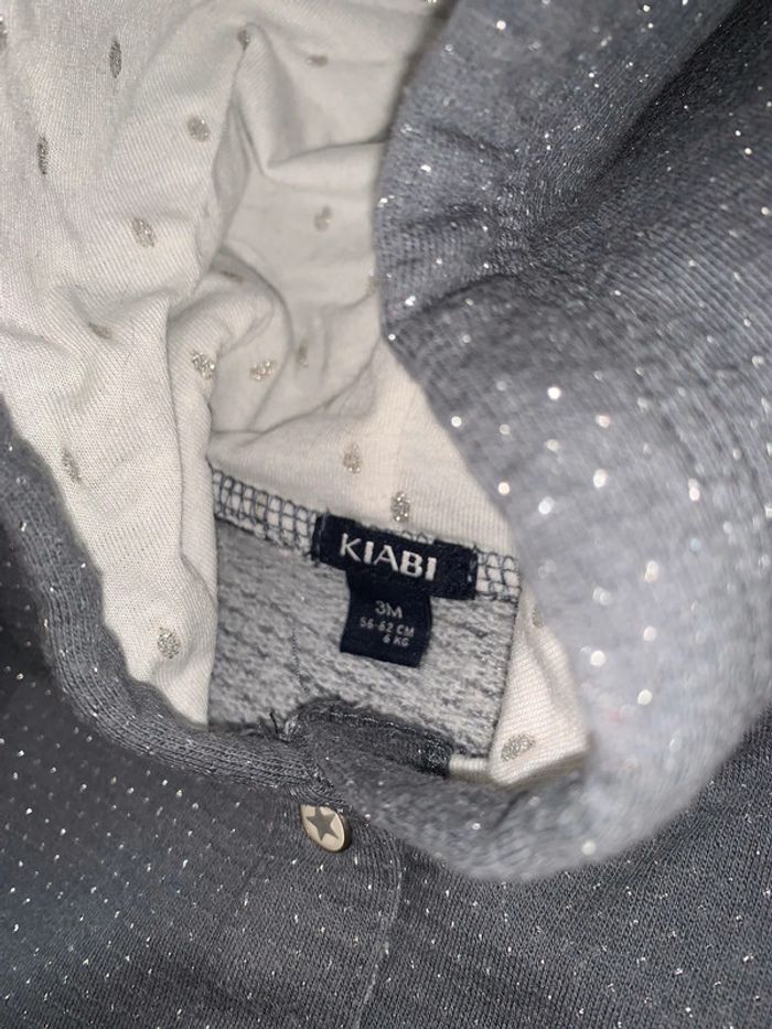 Gilet cardigan bébé fille Kiabi Type sweat ouvert gris anthracite Pois gris argentés à paillettes
