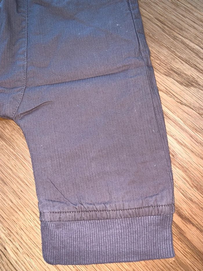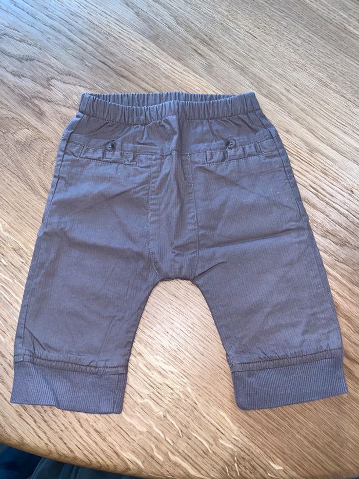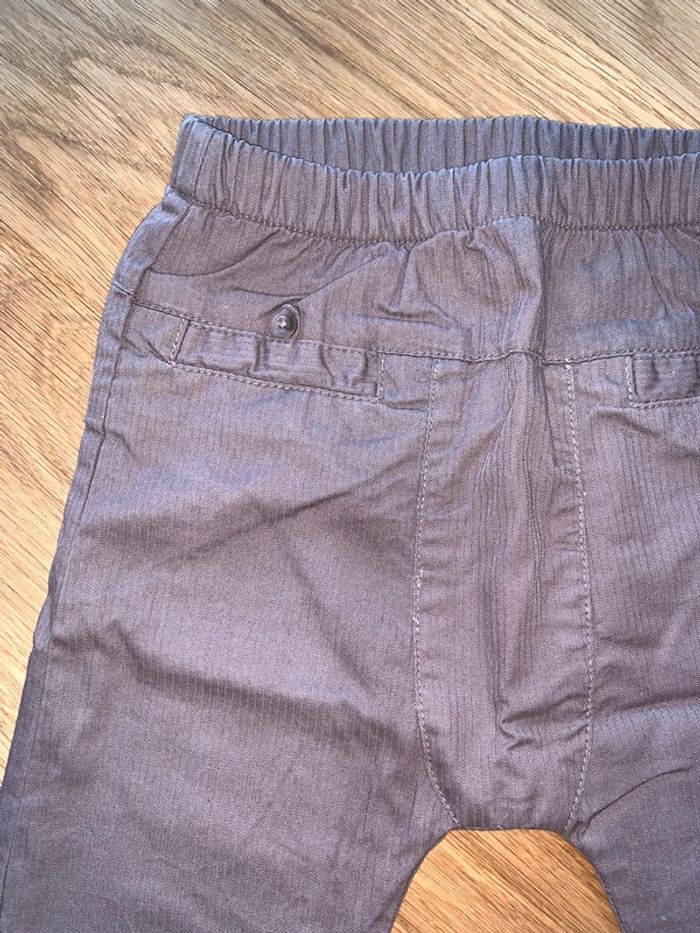 pantalon slim enfant bébé garçon Dpam du pareil au même Tissu rayures ton sur ton marron jambes longues Intérieur doublé coupe droite Découpes + rehausse dos surpiquées porté 2 fois ceinture élastiquée Bracelets chevilles rib Fausses poches avec boutons