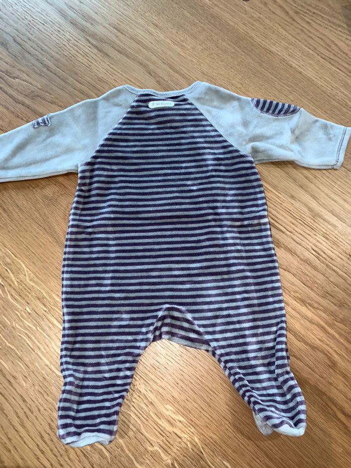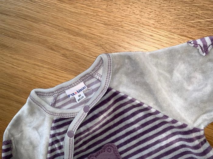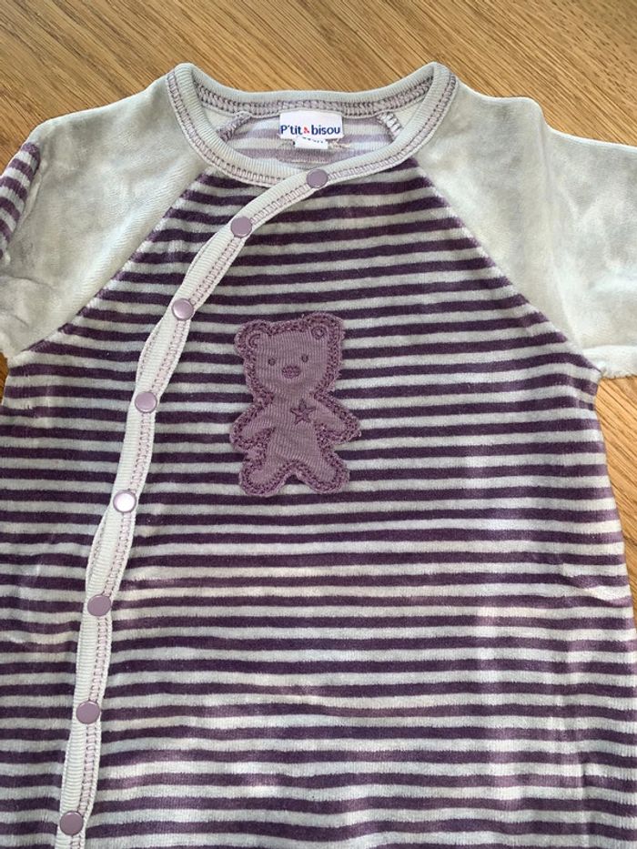 pyjama 1 pièce long bébé garçon P’tit Bisou dors bien à rayures gris violet - photo numéro 2