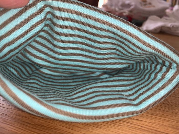 Bonnet bébé mixte garçon ou fille Catimini Bleu turquoise rouge jaune gris vert Motifs rayures Tissu souple avec élasthane Réversible Étiquette déco