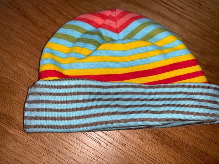 Bonnet bébé mixte Catimini Bleu turquoise rouge jaune gris vert  Motifs rayures réversible - photo numéro 1