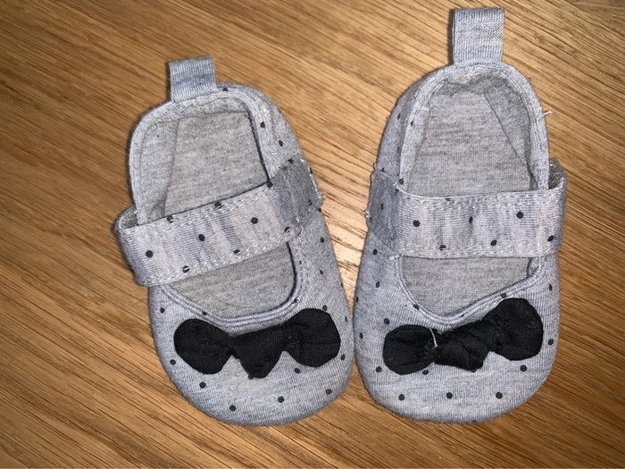 Chaussures chaussons bébé fille Zara Gris chiné + noir Pois noeud - photo numéro 4