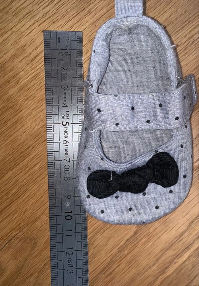 Chaussures chaussons bébé fille Zara Gris chiné + noir Pois noeud - photo numéro 5
