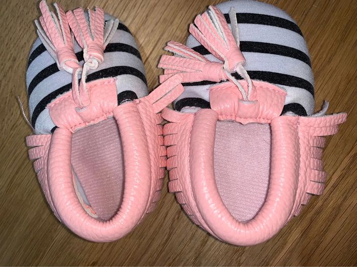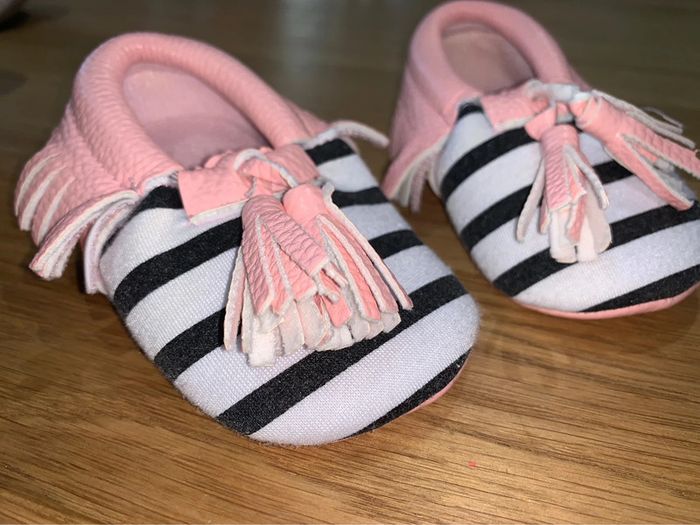 Chaussure bébé fille Tao tape à l’œil  Motifs rayures  Franges + pompons - photo numéro 1
