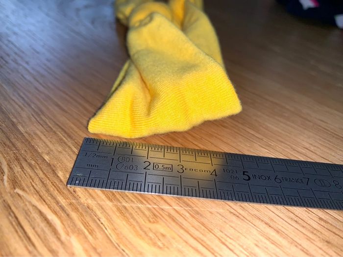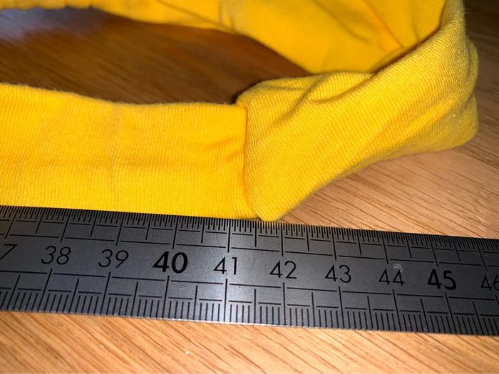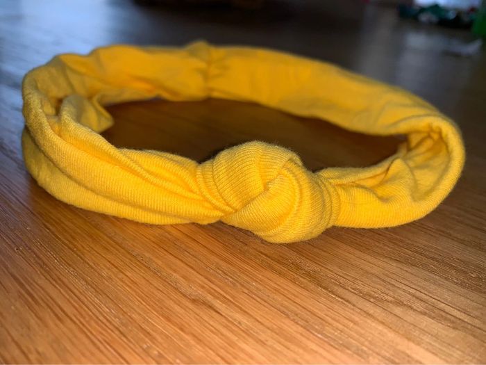 Bandeau tissu Tao tape à l’œil Uni Jaune Noeud torsadé sur le dessus Tour de tête 41,5 cm (bandeau non étiré) Accessoire coiffure cheveux
