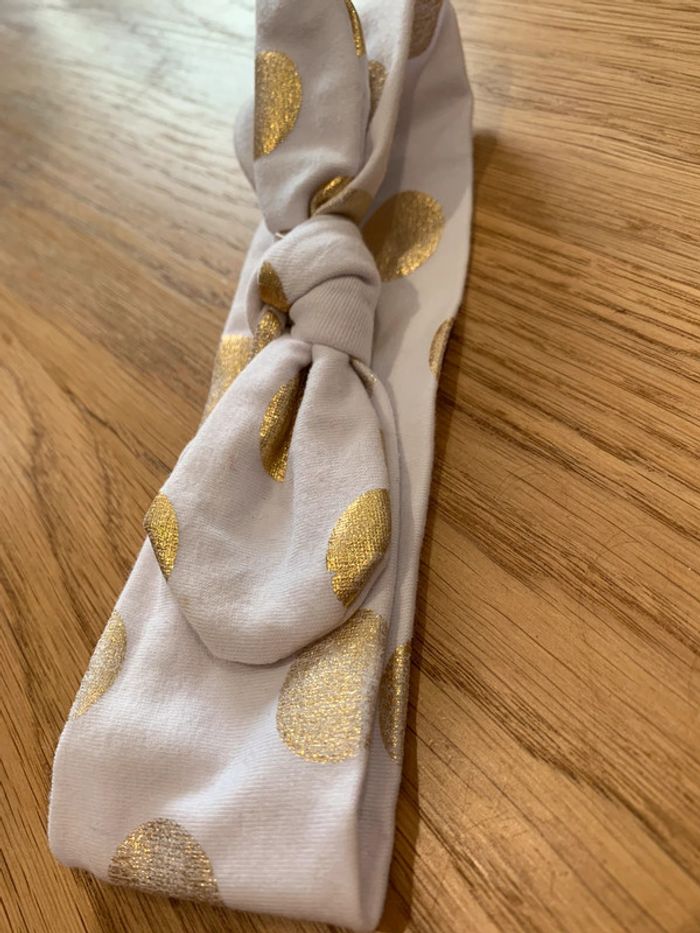 Bandeau tissu Tao tape à l’œil  Motif pois Blanc doré Noeud sur le dessus - photo numéro 1